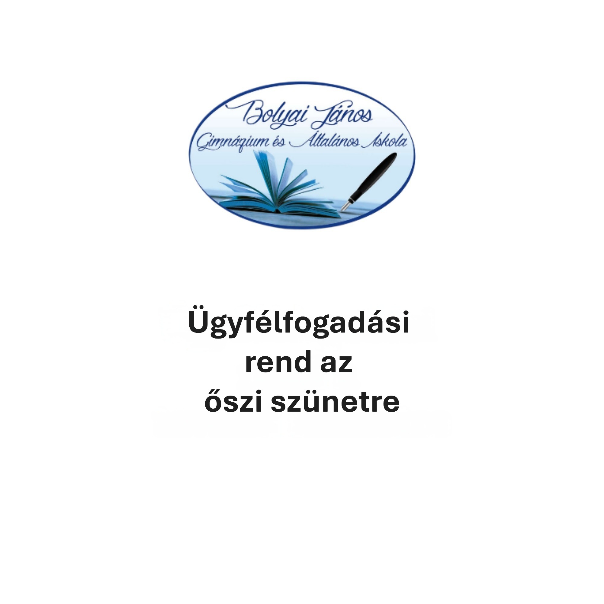 A Bolyai János Gimnázium és Általános iskola székhelyén és minden telephelyén, 2025. október 23. csütörtök és 2025. november 02. vasárnap között, az őszi szünet idején szünetel az ügyfélfogadás.